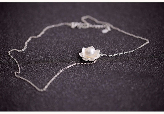 925 Sterling Silver Jewelry Pearl Lotus Flower Necklaces Hot Sale Pure Silver Jewelry For Women