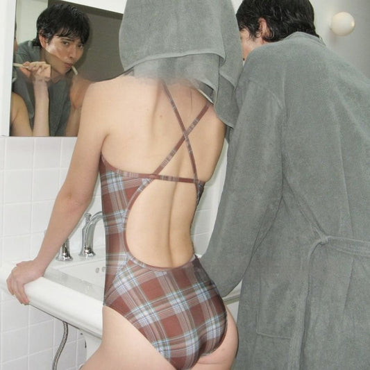Plaid Swimwear Ladies Korea 2023 New Star Same Swim Bikini Hollow Out Cross Straps Sexy Bikini Swimsuit Women Sexy Bikinis Suit