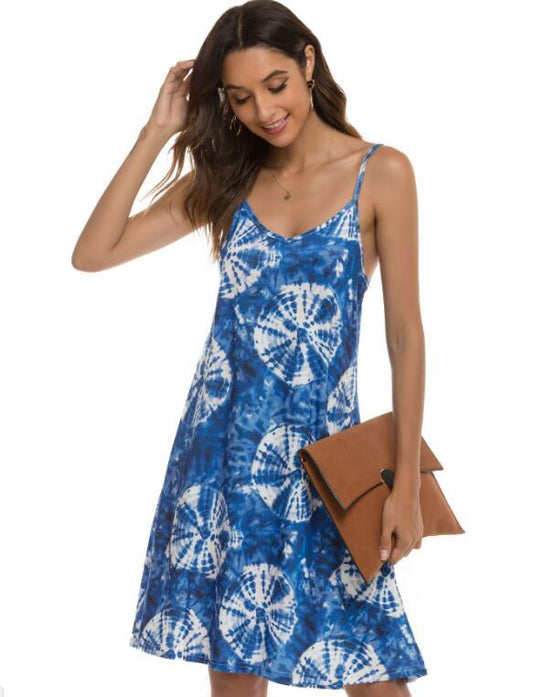 New Summer Sling Print Sleeveless Dress Women