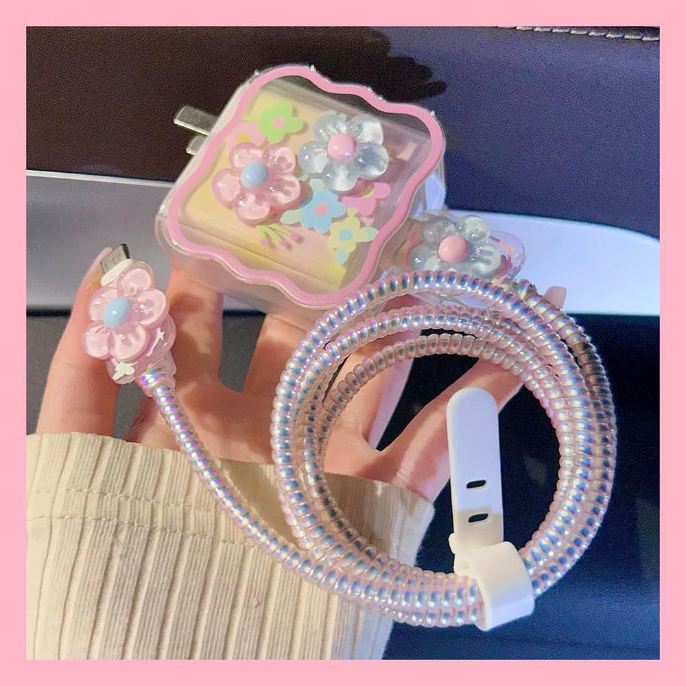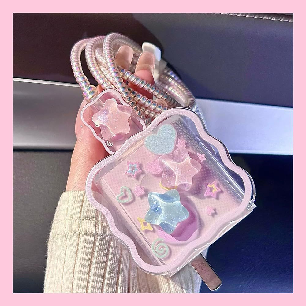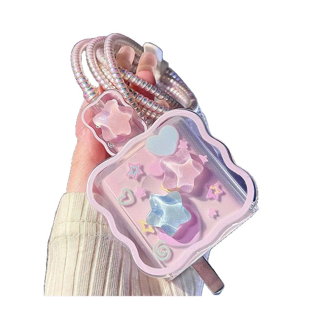 3D Patch Star And Wave Design Protective Case For 20W Chargers Charging Heads And Data Cables